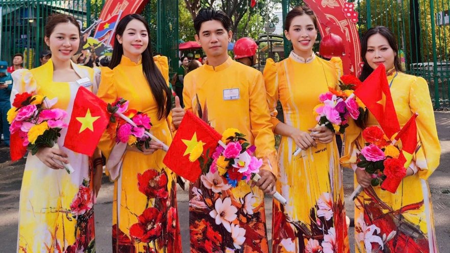 VOV.VN - Hoa hậu Tiểu Vy, Hoa hậu Thanh Thủy, Hoa hậu Bảo Ngọc, Hoa hậu Kiều Duy, Nam vương Tuấn Ngọc, đạo diễn Hoàng Nhật Nam cùng dàn nghệ sĩ có mặt từ 3h sáng 27/4 để chuẩn bị cho hoạt động tổng duyệt diễu binh, diễu hành cấp Nhà nước tại TP.HCM.