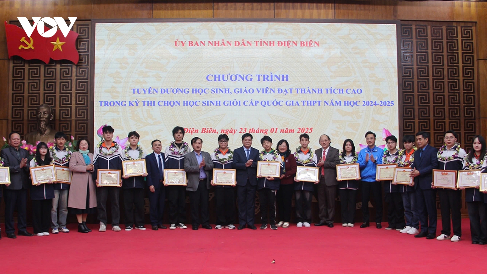 VOV.VN - Sáng 23/1, UBND tỉnh Điện Biên tổ chức lễ tuyên dương các học sinh và giáo viên đạt thành tích xuất sắc trong Kỳ thi chọn học sinh giỏi quốc gia, năm học 2024-2025 (HSGQG)