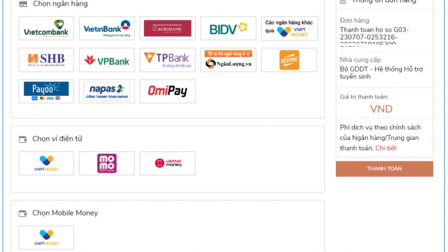 VOV.VN - Từ hôm nay (31/7) đến 17h ngày 6/8, các thí sinh đăng ký và điều chỉnh nguyện vọng thành công trên Hệ thống hỗ trợ tuyển sinh chung của Bộ Giáo dục và Đào tạo bắt đầu nộp lệ phí đăng ký xét tuyển theo hình thức trực tuyến để hoàn thiện quy trình đăng ký xét tuyển đại học năm 2023.