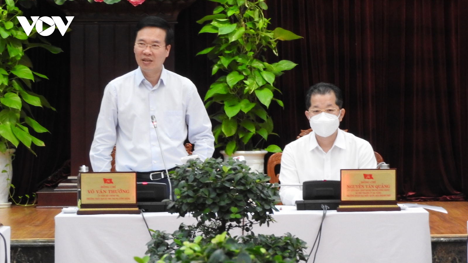 VOV.VN - Ông Võ Văn Thưởng chia sẻ với những khó khăn của thành phố Đà Nẵng liên quan đến việc thực hiện các kết luận thanh tra, kiểm tra, thực hiện các bản án có hiệu lực và đề nghị thanh phố hệ thống lại để báo cáo đề xuất với Trung ương, tháo gỡ khó khăn cho thành phố.