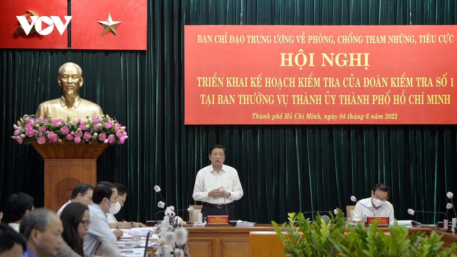 VOV.VN - Chiều 4/6, Đoàn kiểm tra số 1 của Ban Chỉ đạo Trung ương về phòng, chống tham nhũng, tiêu cực đã có buổi làm việc với Ban Thường vụ Thành ủy TP.HCM.