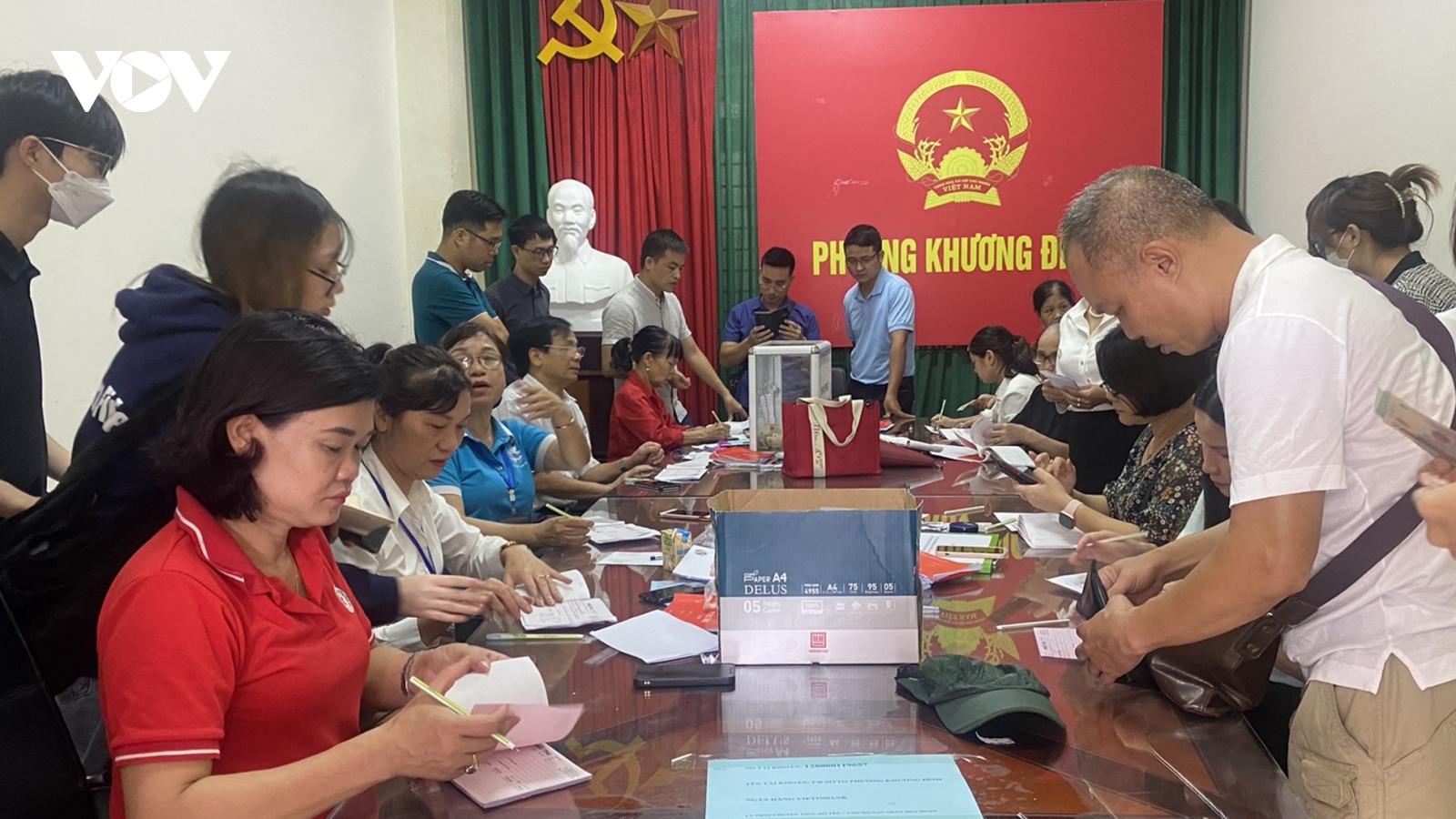 VOV.VN - Tính đến 16h00 ngày 15/9, tổng số tiền Ủy ban MTTQ phường Khương Đình nhận được là 26 tỷ 500 triệu đồng, hơn 500 thùng sữa, nước các loại, 200 thùng mỳ tôm và một số nhu yếu phẩm.