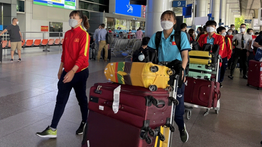 VOV.VN - Sáng nay (18/7), các thành viên ĐT nữ Việt Nam đã đáp chuyến bay sớm từ Manila (Philippines) trở về nước, sau khi kết thúc hành trình ở AFF Cup nữ 2022 với vị trí hạng tư chung cuộc.
