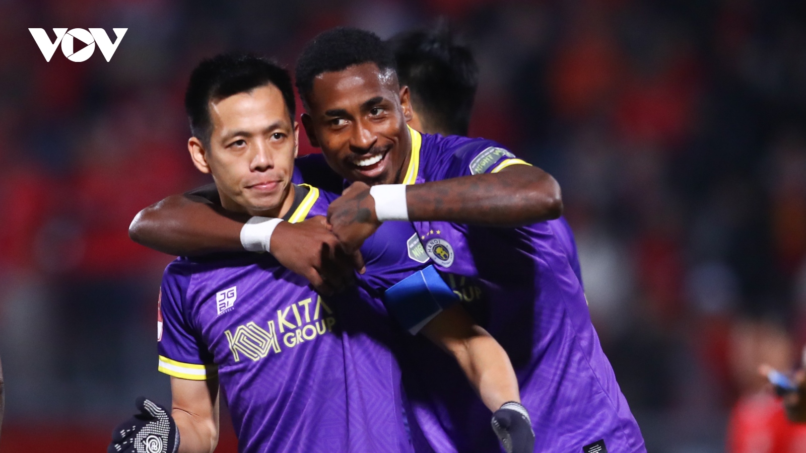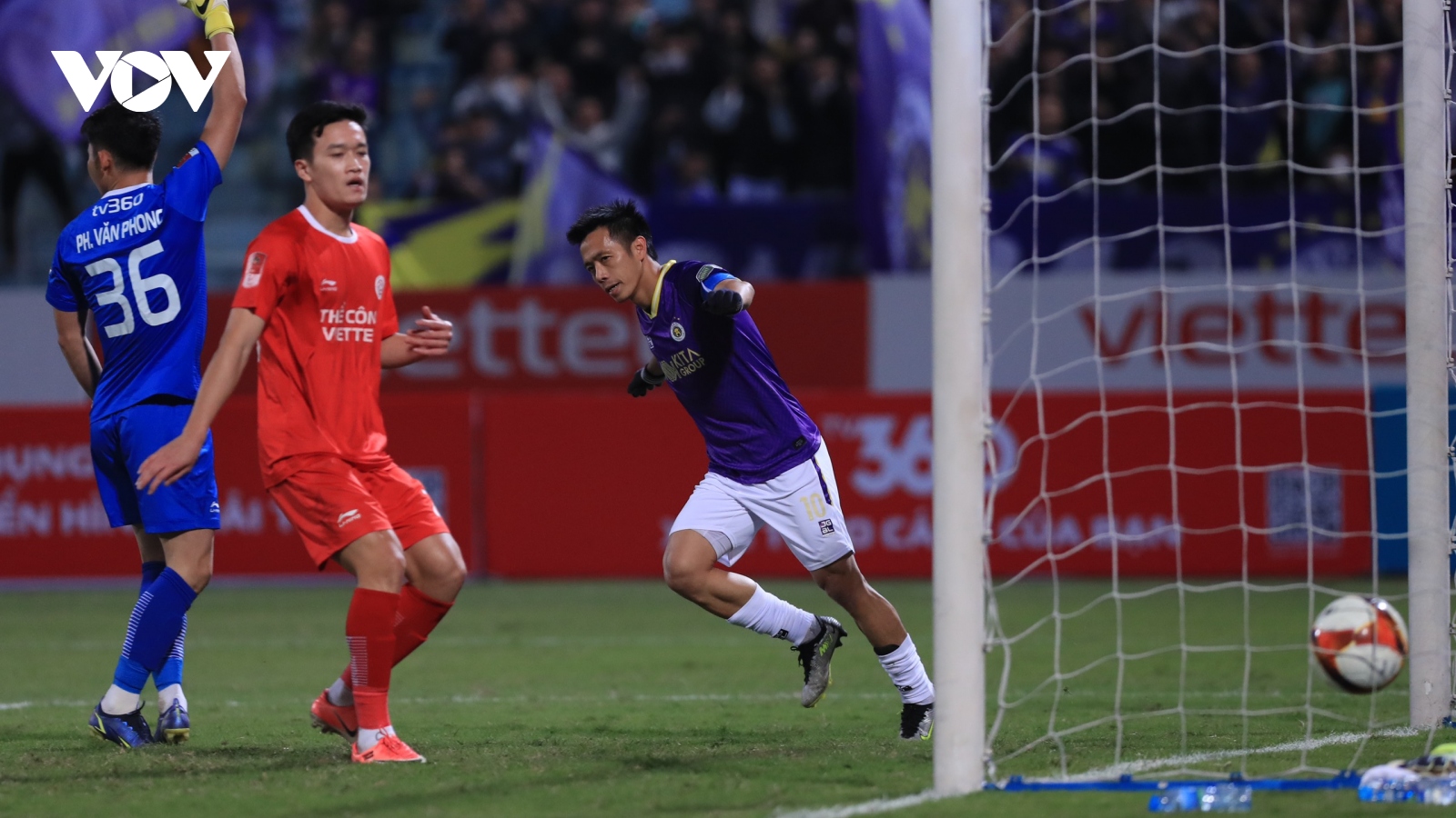 VOV.VN - Hà Nội FC giành thắng lợi với tỷ số 2-0 trước Thể Công Viettel trên sân Hàng Đẫy ở vòng 6 V-League 2023/2024 trong trận đấu mà Văn Quyết vừa ghi bàn vừa kiến tạo.