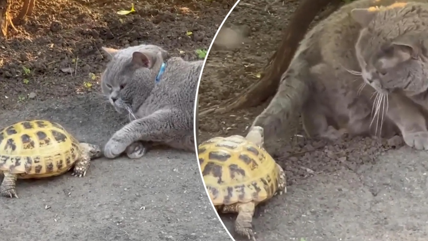 VOV.VN - Một chú rùa nhỏ bé đã cả gan phá giấc ngủ của con mèo có thân hình to gấp nhiều lần. Tuy nhiên, thay vì chống trả lại, chú mèo lại tỏ ra dè dặt và nhanh chóng bỏ chạy trước sự theo đuổi của rùa.
