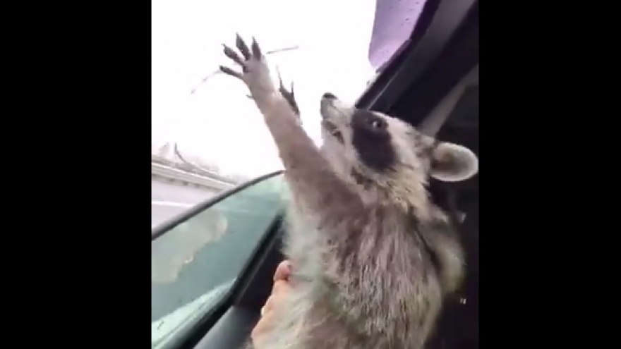 VOV.VN - Chú gấu trúc Mỹ thò đầu ra ngoài cửa kính xe ô tô, tìm cách bắt lấy những giọt nước mưa đang rơi xuống, nhưng dường như càng bắt lại càng mất.