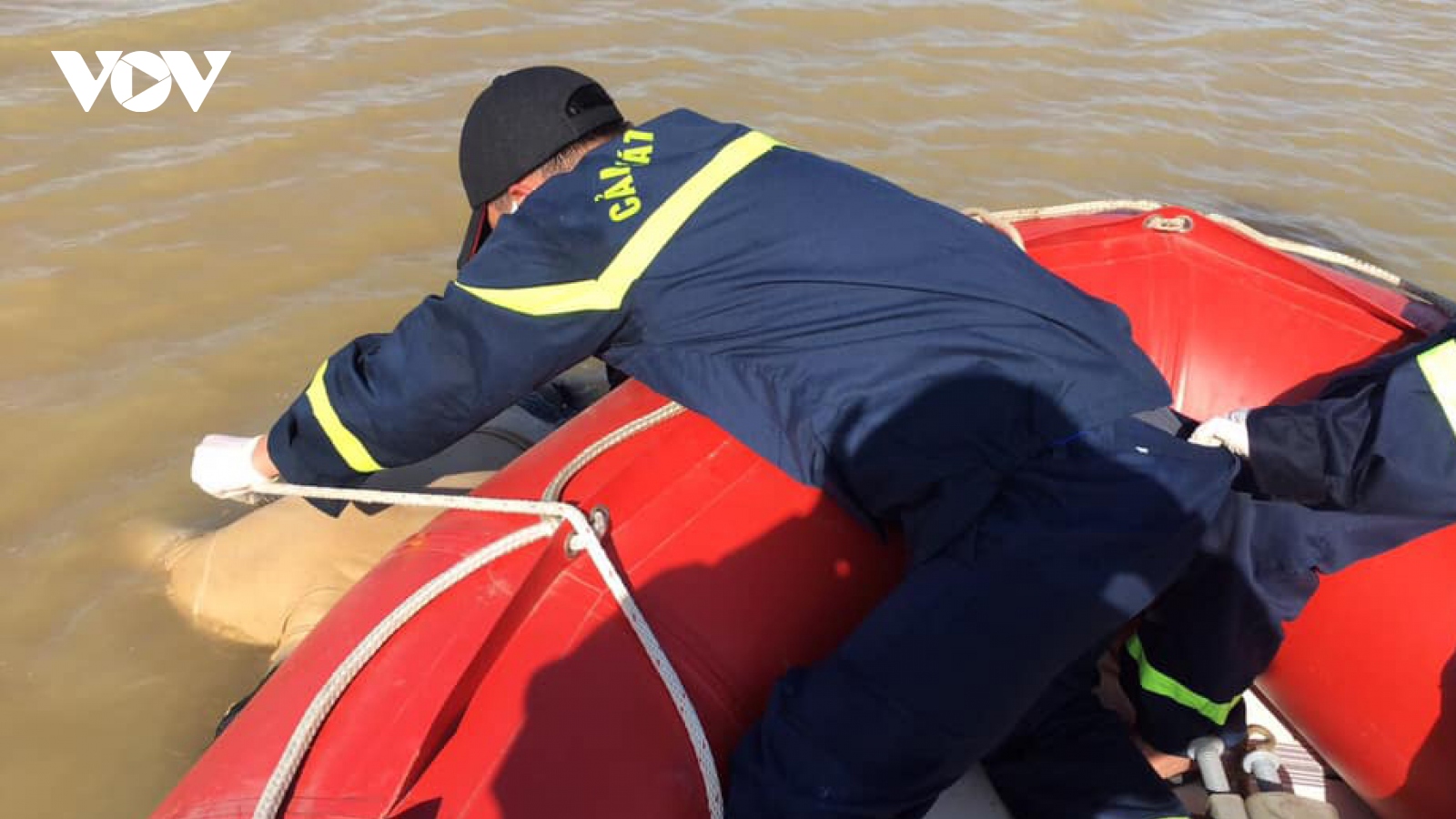 VOV.VN - Sau nhiều giờ nỗ lực tìm kiếm, lực lương cứu hộ đã phát hiện thi thể nam thanh niên ở cách vị trí gặp nạn khoảng 40m xuôi về phía hạ lưu sông Đào