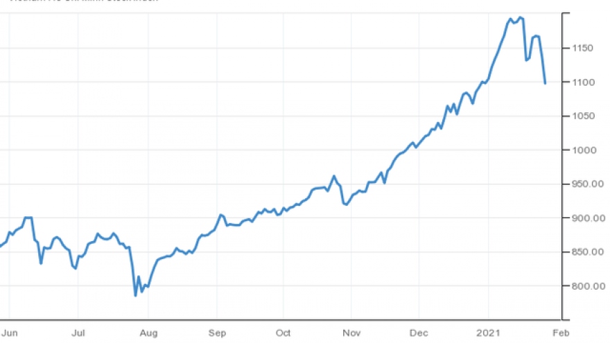 VOV.VN - Sau khi tăng giá liên tiếp từ cuối năm 2020 đến nay, thị trường chứng khoán sáng nay (19/1) chìm trong sắc đỏ, nhà đầu tư ồ ạt bán tháo, khiến thị trường lao dốc. VN-Index "bốc hơi" gần 75 điểm.
