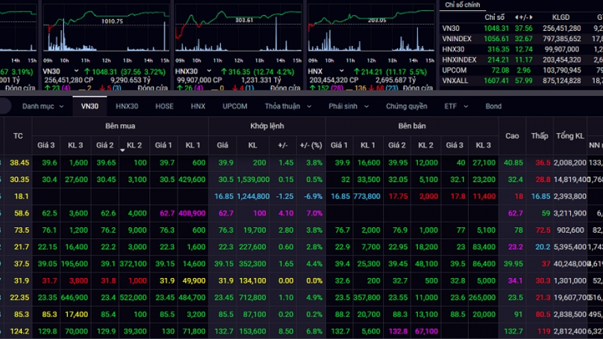 VOV.VN - Trong phiên giao dịch hôm nay 21/1, nhà đầu tư ồ ạt xuống tiền giúp VN-Index lấy lại một nửa số điểm đã mất trong phiên lao dốc kinh hoàng hôm 19/1.