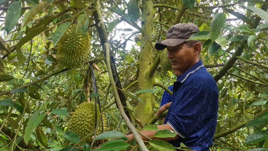 Trái sầu riêng xuất khẩu chính ngạch sang Trung Quốc phải là cây sầu trồng thuần, không được trồng xen. Trong khi đó, người nông dân đang bổ sung, trồng sầu riêng xen lẫn hồ tiêu.