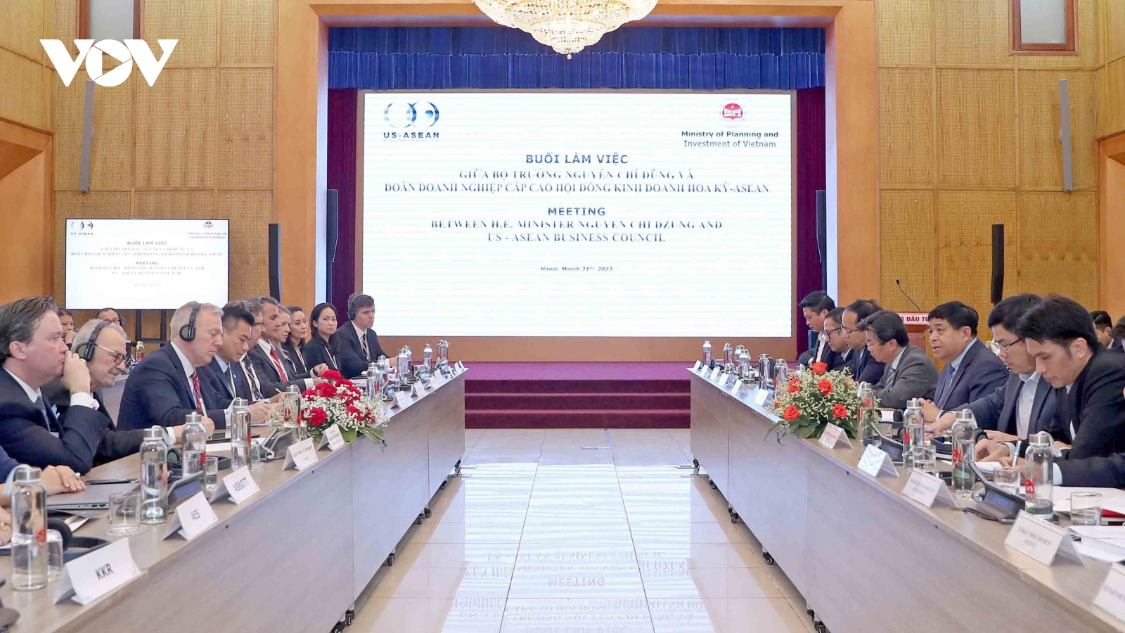 VOV.VN - Chiều 21/3, tại Hà Nội, Bộ trưởng Bộ KH&ĐT Nguyễn Chí Dũng đã tiếp đoàn doanh nghiệp cấp cao Hội đồng kinh doanh Mỹ- ASEAN (USABC) gồm 60 tập đoàn, doanh nghiệp lớn do ông Marc E.Knapper, Đại sứ Mỹ tại Việt Nam; ông Ted Osius, cựu Đại sứ Mỹ tại Việt Nam, Chủ tịch Hội đồng USABC và ông Michael Michalak, Phó Chủ tịch USABC dẫn đầu.