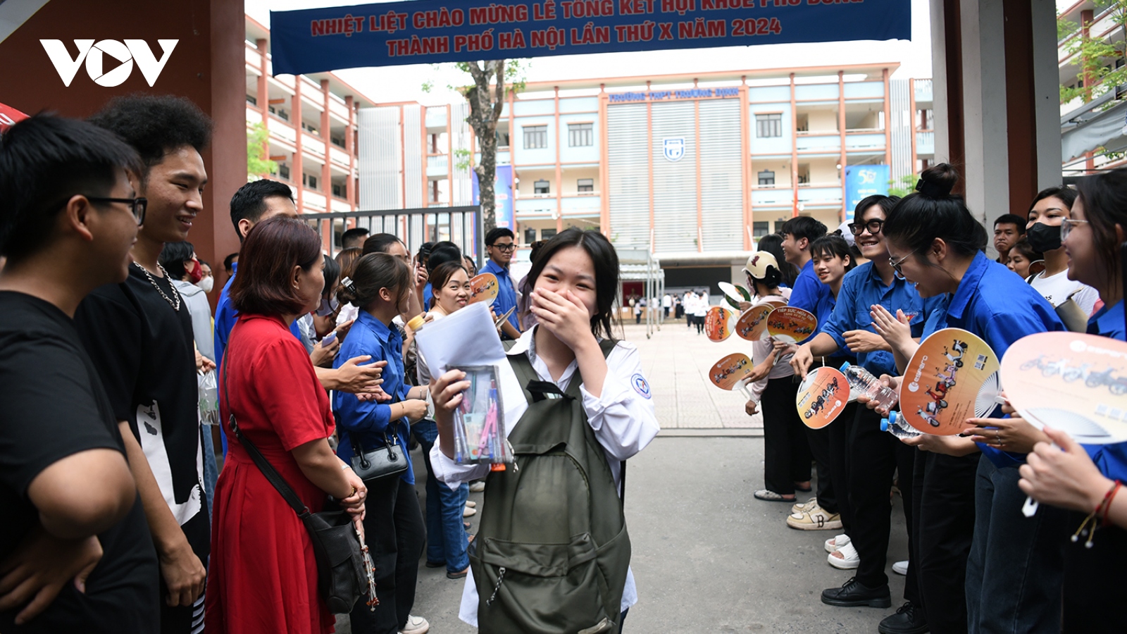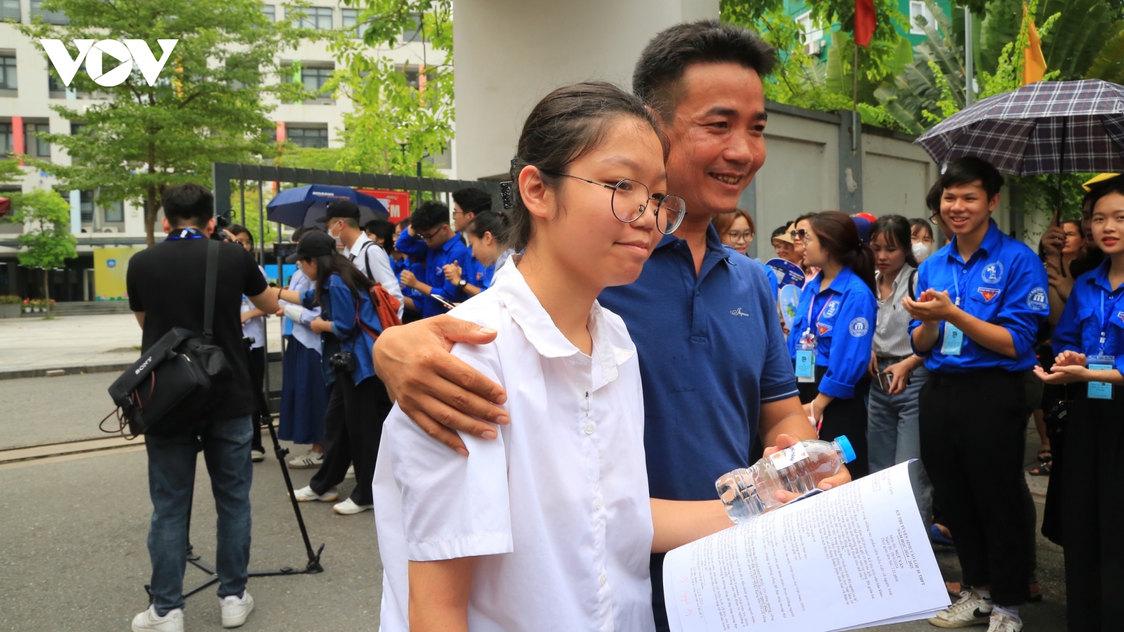 VOV.VN - Kết thúc buổi thi Ngữ văn trong kỳ thi tuyển sinh lớp 10 ở Hà Nội, bên cạnh những nụ cười hạnh phúc, cũng không ít sĩ tử òa khóc khi ra khỏi phòng thi. Dù làm bài tốt hay không, sau cổng trường thi, phụ huynh vẫn ân cần động viên, an ủi các con.