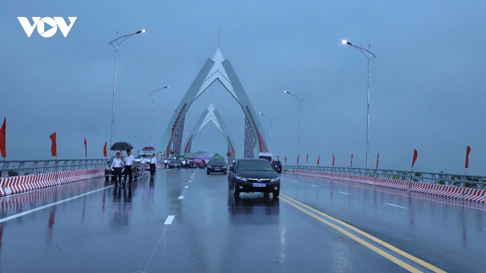 VOV.VN - Sáng 19/5, cầu Thiên Trường bắc qua sông Đào, kết nối TP Nam Định với tuyến đường bộ mới Nam Định - Lạc Quần chính thức được thông xe sau hơn 29 tháng thi công.