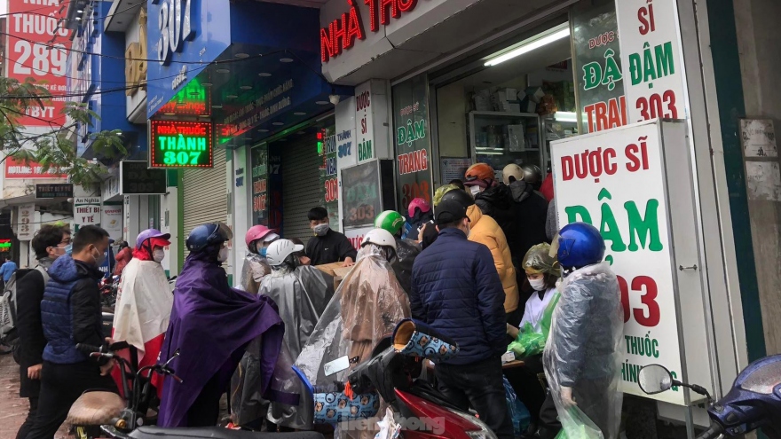 Sau Tết Nguyên đán, số ca mắc COVID-19 ở Hải Phòng liên tiếp tăng cao trong nhiều ngày, đặc biệt là học sinh và giáo viên. Người dân đội mưa xếp hàng trước các cửa hàng thuốc mua que test nhanh, viên xông, thuốc hạ sốt...