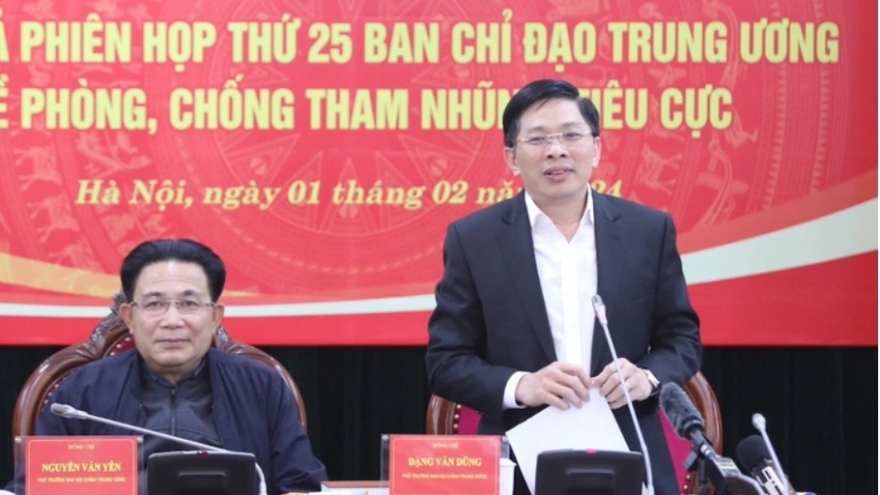 VOV.VN - Ngày 1/2, tại Hà Nội, Ban Chỉ đạo Trung ương về phòng, chống tham nhũng, tiêu cực đã họp Phiên thứ 25 để thảo luận cho ý kiến đối với 4 nội dung báo cáo kiểm điểm kết quả hoạt động của Ban chỉ đạo năm 2023, Chương trình công tác năm 2024, báo cáo kết quả chỉ đạo xử lý các vụ việc, vụ án thuộc diện Ban chỉ đạo theo dõi, chỉ đạo trong năm 2023.