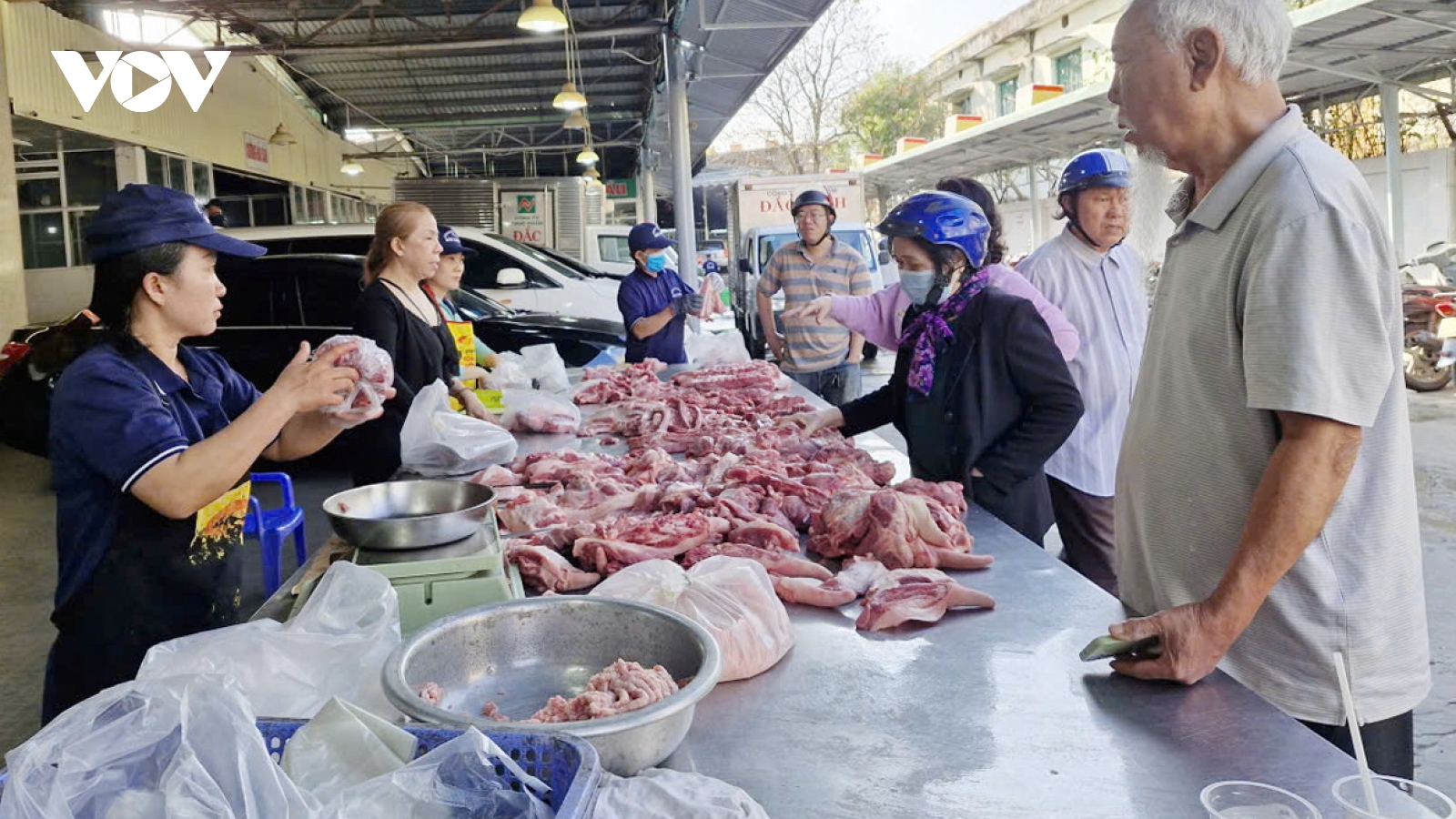 VOV.VN - Dịp Tết Bính Ngọ, Sở Công Thương thành phố Đà Nẵng phối hợp với một số doanh nghiệp tổ chức 19 điểm bán thịt heo, thịt bò, trứng gà bình ổn giá.