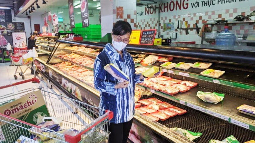 VOV.VN - Sáng 31/5, toàn bộ các tủ mát trữ thịt heo sạch MEATDeli và Gà Tươi 3F đã được bổ sung đầy hàng trên toàn hệ thống VinMart/VinMart+ tại TP HCM để đáp ứng nhu cầu tăng cao của người dân.
