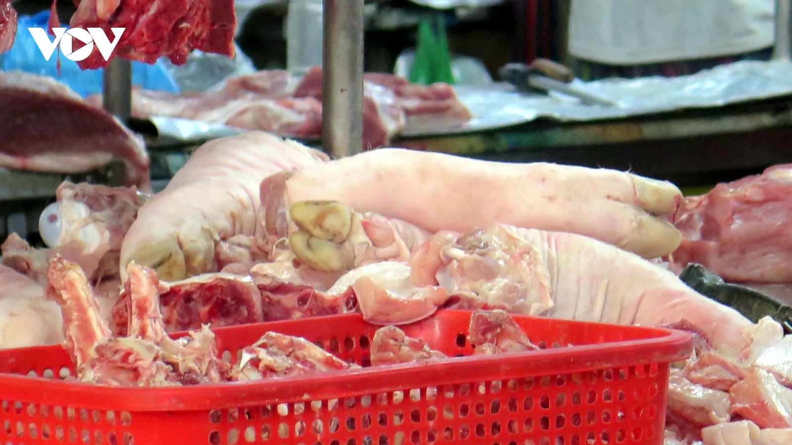 VOV.VN - Giá lợn hơi tuy đã giảm nhưng tiểu thương tại các chợ vẫn phải lấy thịt ở lò mổ với giá cao, cộng với các loại thuế phí, nên khi đến tay người tiêu dùng giá thịt lợn vẫn chưa thể rẻ được.