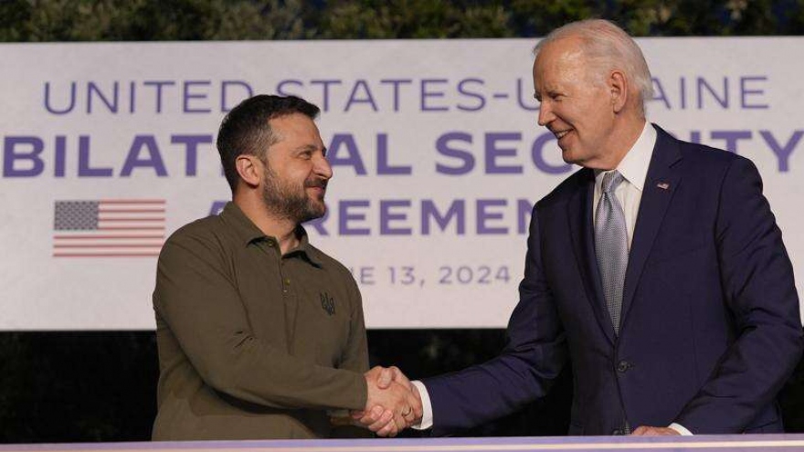 VOV.VN - Bên trong thỏa thuận an ninh hứa hẹn mà Mỹ và Ukraine ký kết với nhau tồn tại kẽ hở đe đọa đến chính thỏa thuận này sau kết quả cuộc bầu cử gần đây ở châu Âu cũng như cuộc bầu cử tổng thống Mỹ vào tháng 11 tới.