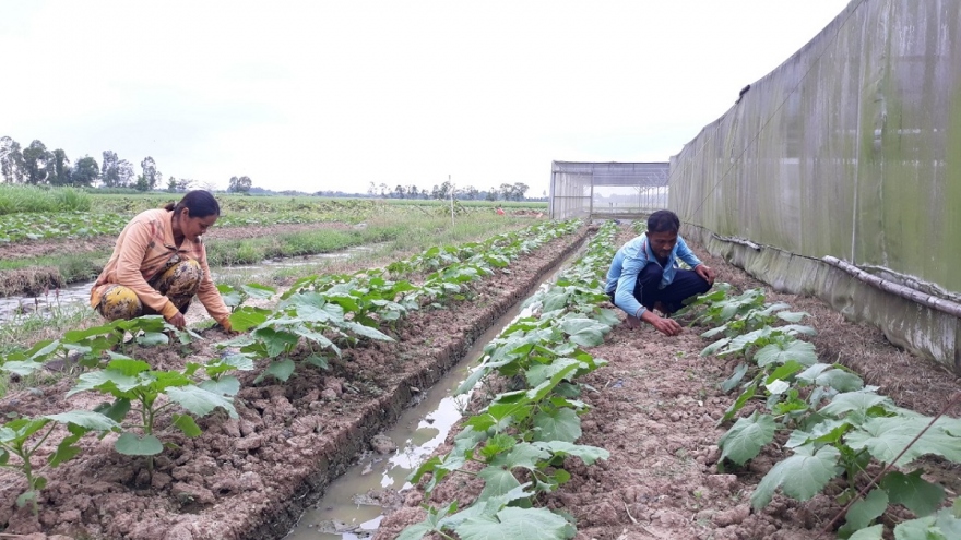 VOV.VN - Nhờ áp dụng mô hình đa canh cây màu kết hợp với chăn nuôi bò thịt, gia đình anh Danh Giang và chị Sơn Thị Ngọc Ánh, ở ấp Phú Ninh, xã An Ninh, huyện Châu Thành, tỉnh Sóc Trăng từ một hộ nghèo với hai bàn tay trắng đã vươn lên thoát nghèo, thu nhập vài ba trăm triệu đồng/năm trên diện tích đất gần 1 hecta.