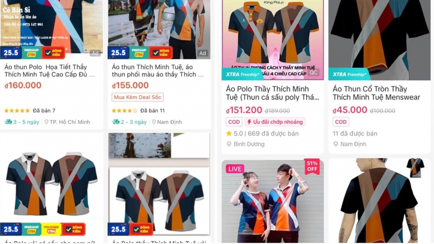 VOV.VN - Trên mạng xã hội, nhiều cửa hàng thời trang online đồng loạt tung ra các mẫu quần áo mô phỏng theo trang phục chắp vá nhiều mảnh của thầy Thích Minh Tuệ.