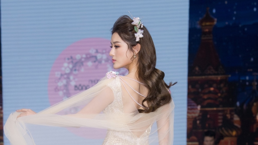 VOV.VN - Đỗ Mỹ Linh đảm nhận vai trò “nặng ký” nhất sàn catwalk của “The Valley Of Goddess” khi trình diễn vedette với mẫu váy đính kết nặng 40kg, gần bằng trọng lượng cơ thể của Hoa hậu.