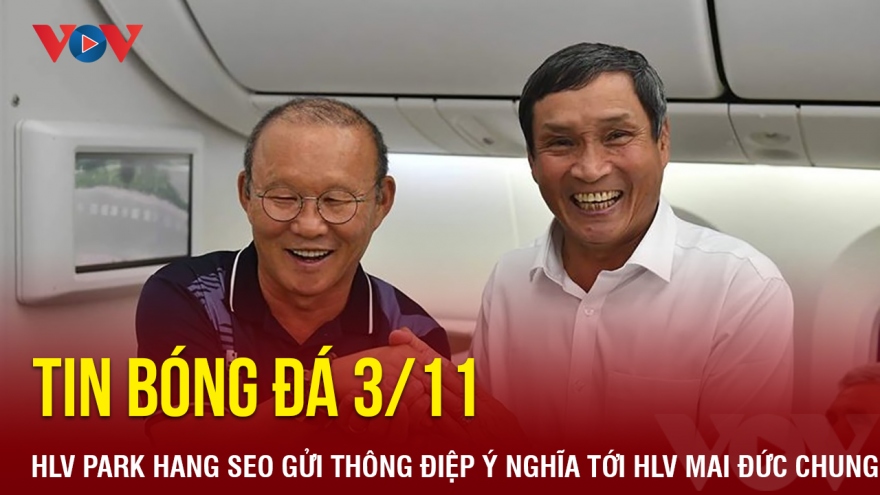 VOV.VN - Tin bóng đá 3/11, HLV Park Hang Seo gửi thông điệp ý nghĩa tới HLV Mai Đức Chung, trọng tài Việt Nam điều hành 13 trận đấu quốc tế chỉ trong 3 tháng.