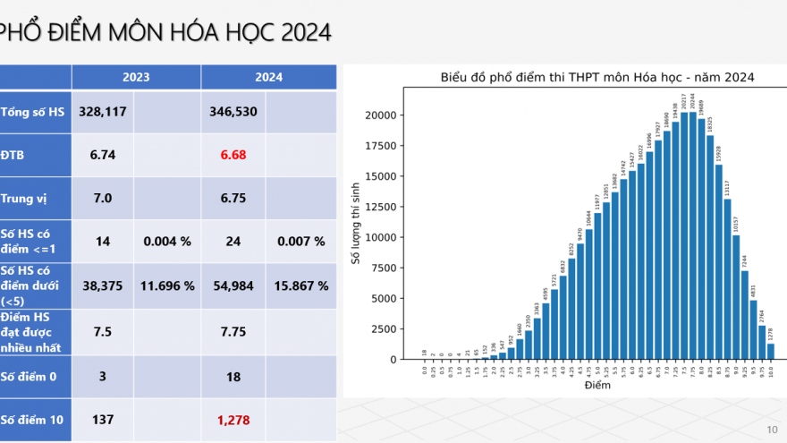 VOV.VN - Theo thống kê của Bộ GD-ĐT, cả nước có 343.813 thí sinh thi các môn thuộc tổ hợp A00 (Toán, Vật lý, Hóa học), trong đó mức điểm trung bình là 20,9 điểm.