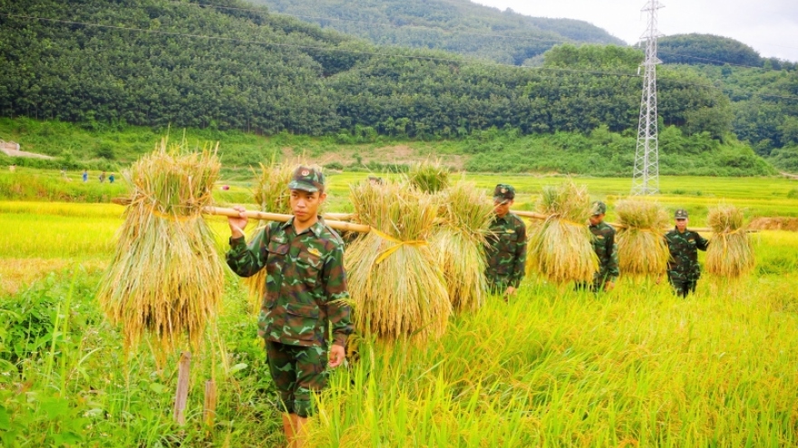 VOV.VN - Với phương châm “3 bám, 4 cùng”, những ngày này các cán bộ, chiến sĩ Đồn Biên phòng Mường Mươn, Bộ Chỉ huy Bộ đội Biên phòng tỉnh Điện Biên đang tập trung nhân lực giúp nhân dân thu hoạch lúa.