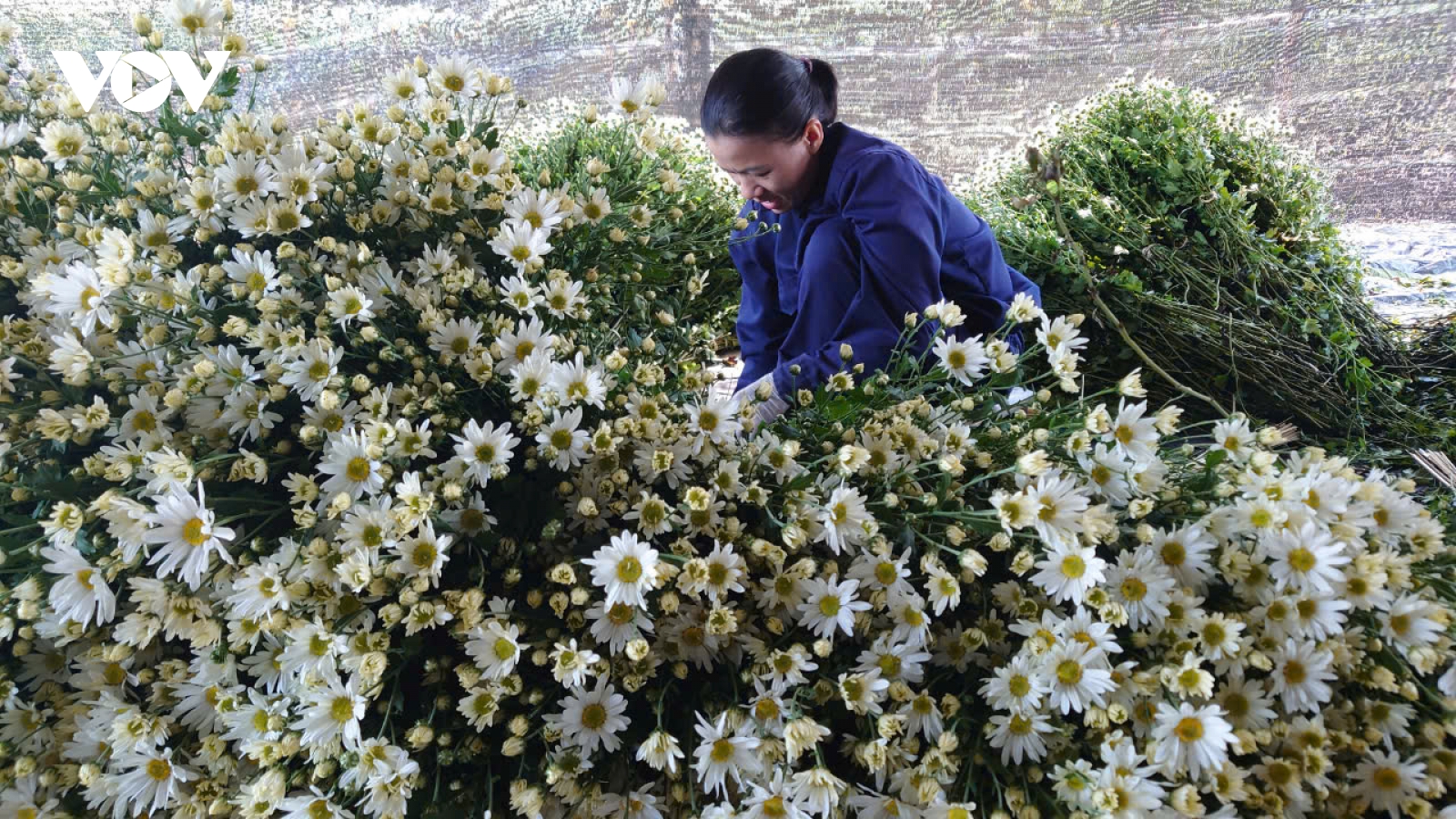 VOV.VN - Tại làng hoa Nhật Tân, Phú Thượng, Hà Nội hiện chỉ còn một vài vườn hoa cúc họa mi còn sót lại sau bão Yagi. Những ngày đầu tháng 11 này, trên những cánh đồng hoa, người dân tất bật thu hoạch rồi đưa đi các tỉnh hoặc chợ đầu mối tiêu thụ.