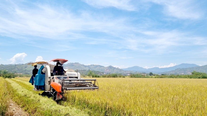 VOV.VN - Thời điểm này, nông dân Đắk Lắk đang cấp tập thu hoạch lúa vụ Đông Xuân. Năm nay, sắc vàng của lúa chín càng làm tươi thêm nụ cười người nông dân bởi lúa được mùa, được giá.