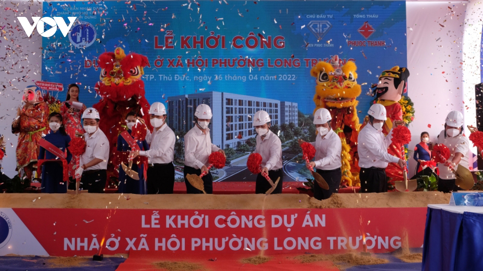 VOV.VN - Sáng 26/4 tại TP.Thủ Đức, Sở Xây dựng TP.HCM phối hợp với chủ đầu tư tổ chức khởi công dự án Nhà ở xã hội phường Long Trường. Đây là động thái nhằm hiện thực hóa kế hoạch phát triển 35.000 căn nhà ở xã hội giai đoạn 2021-2025
