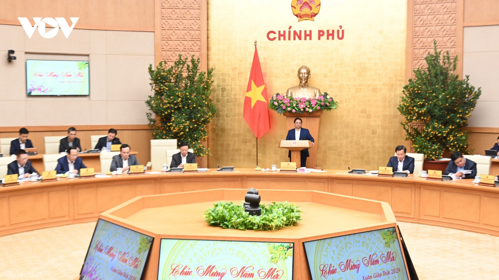VOV.VN - Sáng nay 15/2 (mùng 6 Tết), ngày là việc đầu tiên sau kỳ nghỉ Tết Nguyên đán 2024, Thủ tướng Chính phủ Phạm Minh Chính chủ trì họp Thường trực Chính phủ để đánh giá tình hình Tết Nguyên đán Giáp Thìn 2024 và triển khai các nhiệm vụ trọng tâm sau Tết.