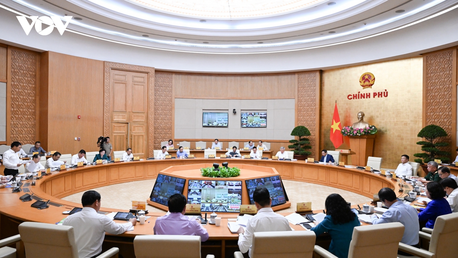 VOV.VN - Tối 6/10, tại Trụ sở Chính phủ, Thủ tướng Chính phủ Phạm Minh Chính chủ trì phiên họp Thường trực Chính phủ với các bộ, ngành, địa phương cho ý kiến vào Đề án trình Bộ Chính trị về rà soát, tháo gỡ khó khăn, vướng mắc cho các dự án.