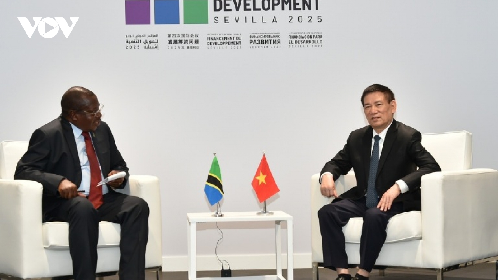 VOV.VN - Trong khuôn khổ tham dự Hội nghị quốc tế lần thứ tư về tài chính cho phát triển tại Seville Tây Ban Nha, sáng 1/7(theo giờ địa phương), Phó Thủ tướng Chính phủ Hồ Đức Phớc đã gặp Phó Tổng thống Tanzania Philip Isdor Mpango.
