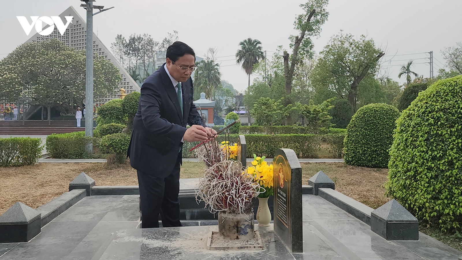 VOV.VN - Sáng nay (17/4), nhân kỷ niệm 70 năm Chiến thắng Điện Biên Phủ, Đoàn công tác của Chính phủ do Thủ tướng Phạm Minh Chính làm trưởng đoàn đã dâng hương, dâng hoa tưởng niệm các Anh hùng, liệt sỹ tại Nghĩa trang liệt sỹ A1.