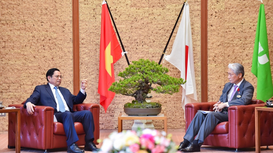 VOV.VN - Trong khuôn khổ chuyến thăm chính thức Nhật Bản, chiều tối nay 23/11, Thủ tướng Phạm Minh Chính đã tiếp lãnh đạo nhiều tập đoàn lớn của Nhật Bản trong các lĩnh vực năng lượng, may mặc, thương mại bán lẻ, tiêu dùng và phát triển hạ tầng.