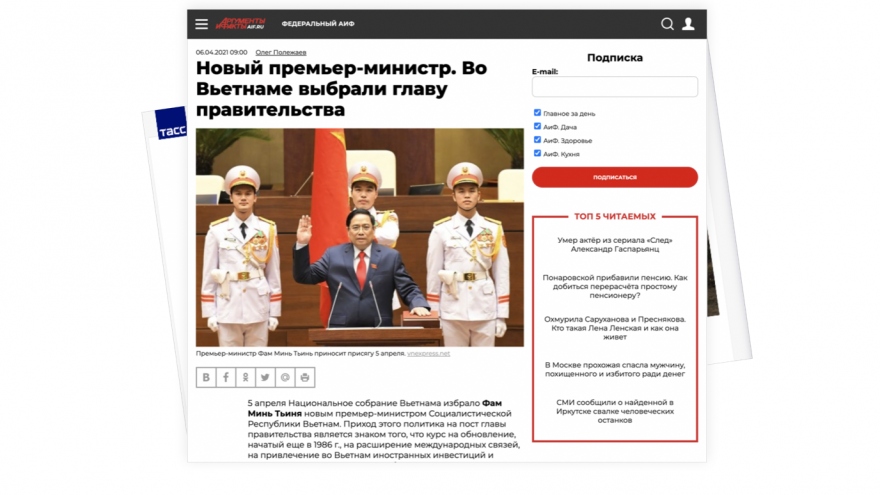 VOV.VN - Báo chí Ukraine đăng bài viết thể hiện sự tin tưởng, Chính phủ mới của Việt Nam sẽ tiếp tục kế thừa những thành tựu đạt được của người tiền nhiệm, đồng thời phát huy sự sáng tạo, tư duy đổi mới, “dám nghĩ, dám làm”, sự quyết tâm của tân Thủ tướng Phạm Minh Chính.