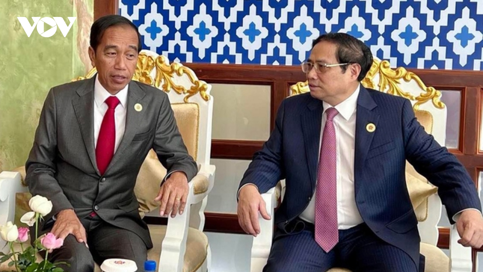 VOV.VN - Nhân dịp tham dự Hội nghị cấp cao ASEAN lần thứ 40, 41 tại thủ đô Phnom Penh, Campuchia, Thủ tướng Phạm Minh Chính đã tiếp xúc với Tổng thống Indonesia, Thủ tướng Thái Lan và nhiều quan chức ASEAN.