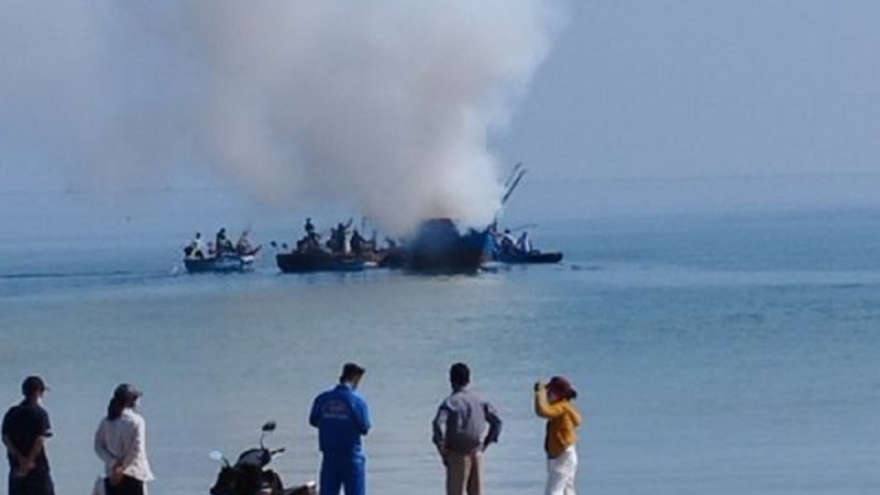 VOV.VN - Đang neo đậu gần bờ biển xã Lộc Vĩnh, huyện Phú Lộc, tỉnh Thừa Thiên Huế, một tàu cá của ngư dân bất ngờ bốc cháy, thiêu rụi nhiều đồ đạc, thiết bị, thiệt hại khoảng 500 triệu đồng.