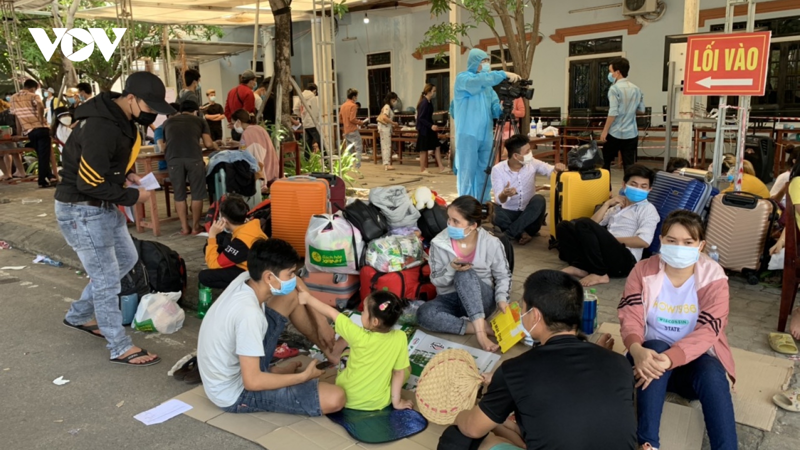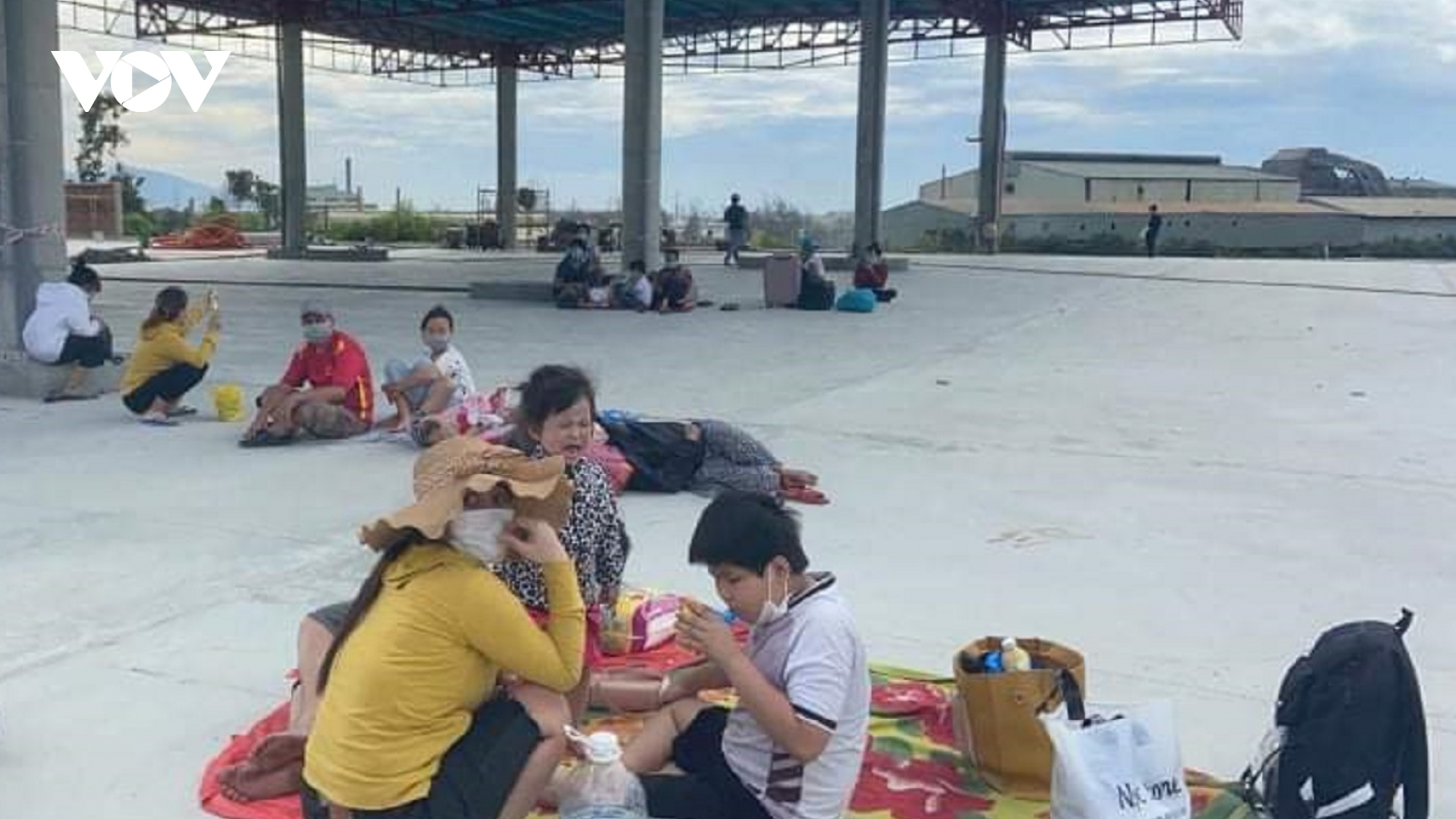 VOV.VN - Trước đó, sáng 4/8, nhóm người từ quận Bình Tân, TP.HCM quê ở huyện Phú Lộc, tỉnh Thừa Thiên Huế phải vạ vật ở trạm trung chuyển hầm Hải Vân, địa phận Đà Nẵng. Nhóm người này vào TP.HCM làm thuê và công nhân may.