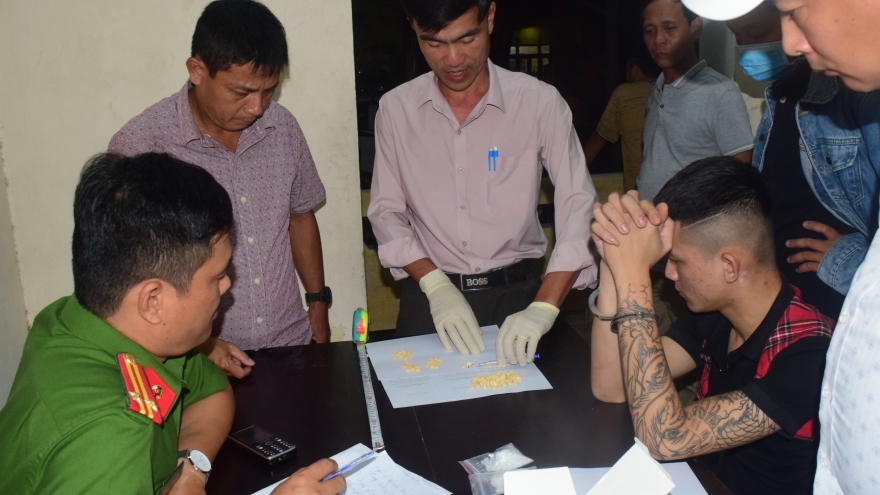 VOV.VN - Công an tỉnh Thừa Thiên Huế vừa bắt quả tang 2 đối tượng tàng trữ chất ma túy và nhiều con nghiện đang sử dụng trái phép chất ma túy tại khách sạn New Valetine.