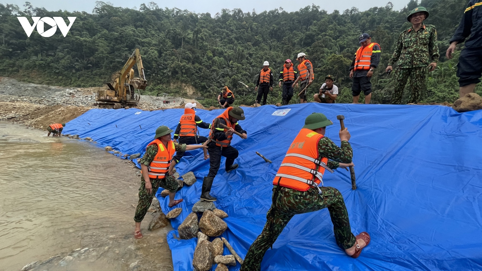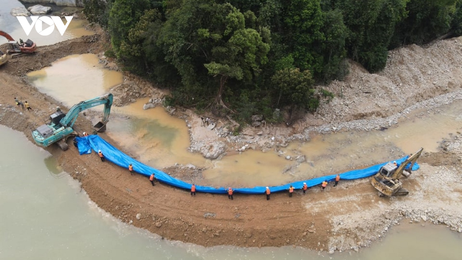 VOV.VN - Đào hơn 30.000 khối đất tại khu vực bãi bồi, hút nước tìm kiếm dưới lòng sông Rào Trăng, nhưng lực lượng chức năng không tìm được ai trong số 11 công nhân mất tích.