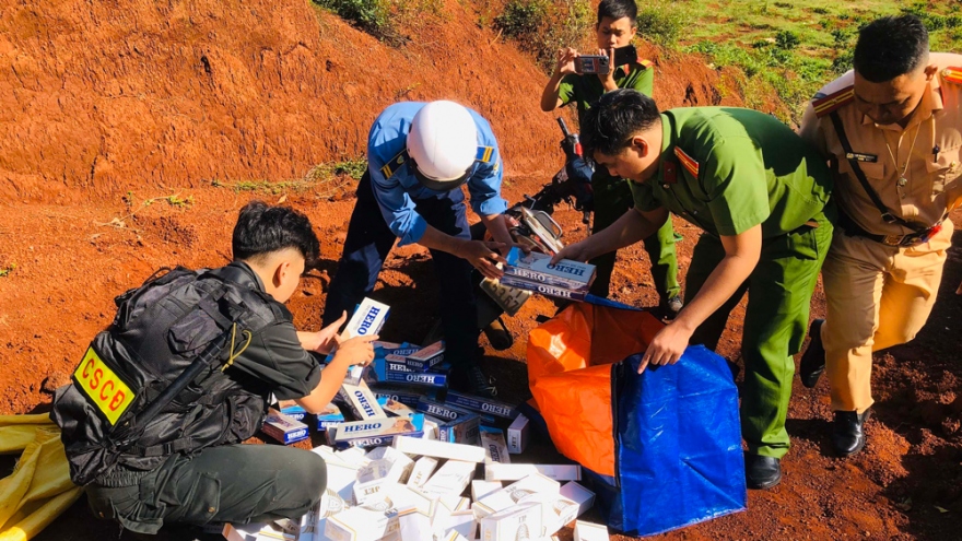 VOV.VN - Ngày 8/11, Đội Cảnh sát giao thông số 3, Công an tỉnh Bình Phước thu giữ một xe máy cùng 1.000 bao thuốc lá ngoại, do đối tượng nghi buôn lậu bỏ lại khi bị truy đuổi.