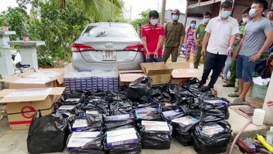 VOV.VN - Trong lúc tuần tra kiểm soát và phòng, chống dịch Covid-19, cán bộ, chiến sĩ Phòng CSGT Công an tỉnh Sóc Trăng đã phát hiện, bắt giữ vụ vận chuyển thuốc lá ngoại trái phép với số lượng lớn.