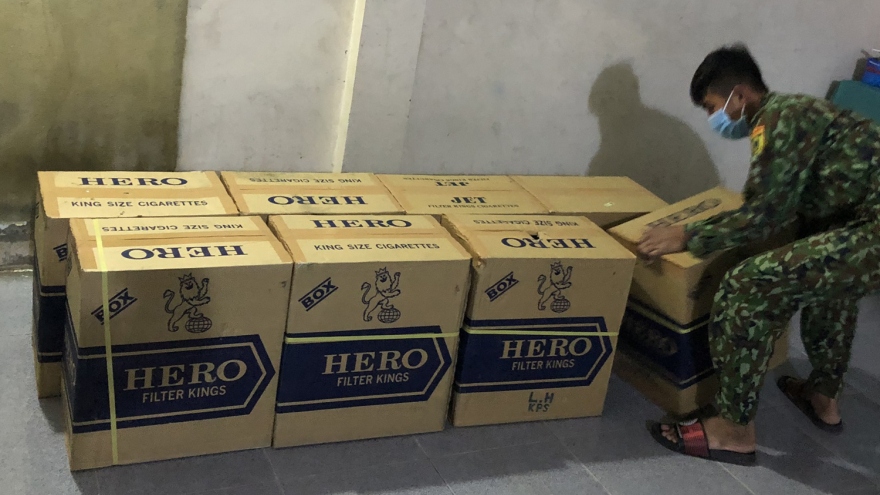 VOV.VN - Đồn Biên phòng Cửa khẩu Quốc tế Hà Tiên, Bộ đội Biên phòng tỉnh Kiên Giang vừa bắt giữ hơn 21.000 gói thuốc lá vận chuyển trái phép qua biên giới.
