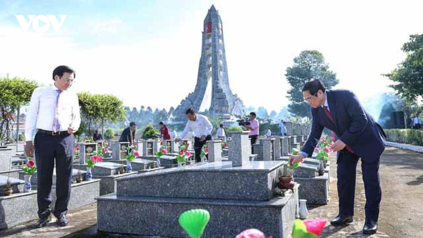 VOV.VN - Sáng 16/7, nhân kỷ niệm 75 năm Ngày Thương binh – Liệt sĩ (27/7/1947-27/7/2022), tại tỉnh Hậu Giang, Thủ tướng Phạm Minh Chính và đoàn công tác đã tới dâng hương, dâng hoa tại Nghĩa trang liệt sĩ tỉnh Hậu Giang.