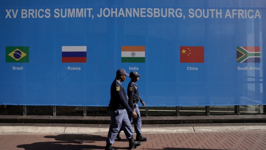 VOV.VN - “Thúc đẩy một khối thương mại đại diện cho đa số toàn cầu”. Đây là tham vọng được các nhà lãnh đạo Nhóm các nền kinh tế mới nổi hàng đầu thế giới (BRICS) đưa tại Hội nghị thượng đỉnh đang diễn ra tại Johannestburg, Nam Phi.