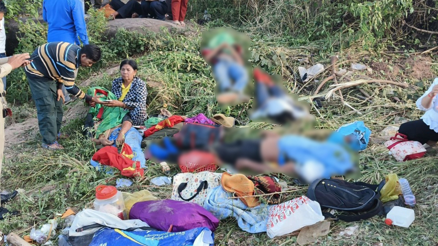 VOV.VN - Xe bán tải chở theo hàng chục người chạy trên khu vực núi Kulen, tỉnh Siem Reap (Campuchia) bất ngờ bị lật nhào khiến 7 người tử vong và và 17 người khác bị thương.