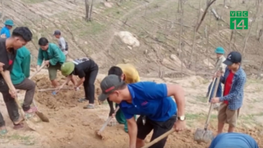 Thủy điện Bản Vẽ trơ đáy, dân mở đường đi bộ dưới lòng hồ